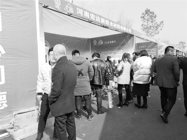 2月11日,项城市建筑防水产业发展暨2019年项城防水协会会员代表大会召开之后,贾岭镇认真落实会议精神,及时举办2019年防水文化交流大会,来自北京、上海、辽宁、黑龙江、河北等地的50多家防水企业参加本次为期2天的交流大会。近年来,项城市把防水产业作为重点产业来抓,大力实施回归工程,着力打造总部经济,防水产业发展取得显著成效,成为带动农民致富、拉动经济发展的重要引擎。图为会展现场参展企业。 记者 滕永生 摄