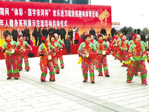 本报讯 2月12日上午,周口市2019年“欢乐进万家”春节文化活动之一民俗趣味体育活动暨老年人健身系列展示交流活动在市体育中心精彩“开锣”,来自我市的10支民俗表演队和300多位群众文艺爱好者为市民带来一场极具特色的文化盛宴。