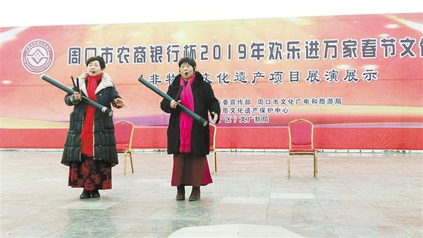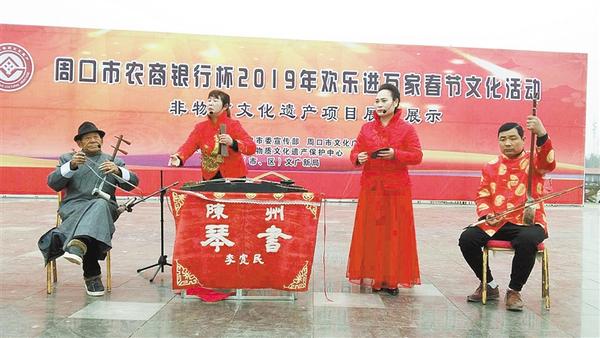 当日下午,周口市2019年“欢乐进万家”春节文化活动之一非物质文化遗产项目展演展示活动在周口公园拉开帷幕。2月12日至2月16日,市民在这里可以欣赏到 60个“非遗”项目的展演展示。