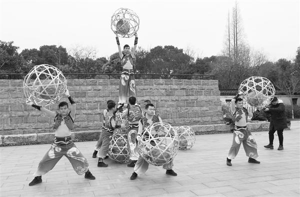 2月17日,中国舞协非遗传统舞蹈影像采集项目工作组在浙江省海盐县拍摄采集海盐县武原街道男子滚灯队的滚灯表演。