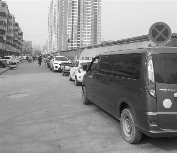近日,周口市中心城区丁字街(荷花北路至中州大道段)东西两侧路口设立了禁止停车标示牌,违停车辆已被交警贴上了罚单。记者 刘昂 摄
