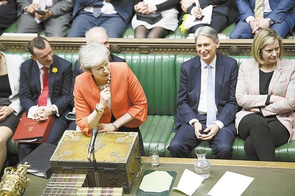 特雷莎·梅2月26日说,如果“脱欧”协议在3月的英国议会下院投票中未获通过,且“无协议脱欧”被排除,那么将由议会下院通过投票决定是否推迟“脱欧”。新华社发