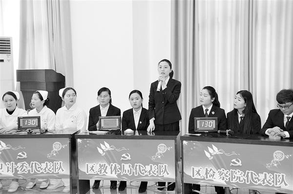 为庆祝即将到来的三八妇女节,喜迎中国共产党成立98周年,3月6日上午,川汇区委组织部、区直机关工委、区妇联在河南长城门业有限公司联合举办“巾帼心向党 建功新时代”知识竞赛暨“出彩巾帼”表彰活动。来自全区各办事处、各委局妇女代表和知识竞赛参赛队共200余人参加活动。 记者 韩志刚 摄