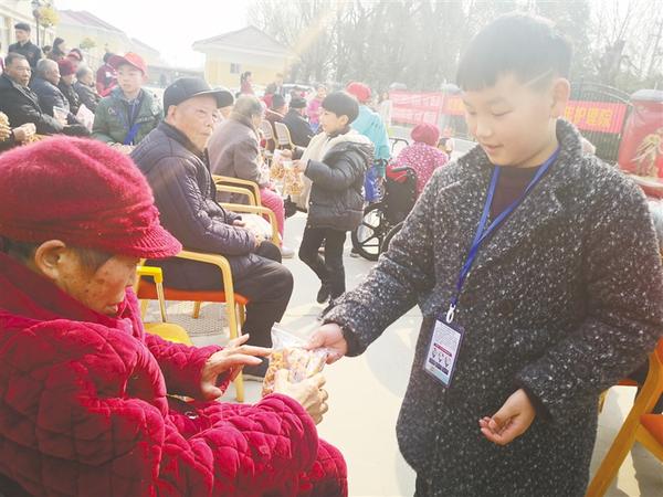节目结束后,小记者为每位老人送上一袋麻花。这些麻花是小记者用爱心换物活动的爱心善款买的。参加此次活动的小记者纷纷表示:“把爱心换物活动款给爷爷奶奶买麻花,真的太有意义了。”一位参加活动的家长表示,尊老、爱老、敬老是中国人传统的美德,这样的活动让孩子们更能体会到如何尊老,同时也让“老吾老以及人之老”的美德得到传承。