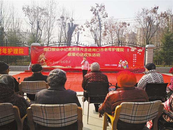 本报讯 尊老爱幼是中华民族的传统美德,为发扬尊老爱老的传统美德,弘扬雷锋精神,周口报业小记者牵手川汇区中医院荷花社区中医馆开展“雷锋月”活动。3月9日上午,周口报业20多名小记者走进周口市老年护理院,带着米面油等慰问品看望生活在这里的老人们,并为他们送去精彩的文艺节目。