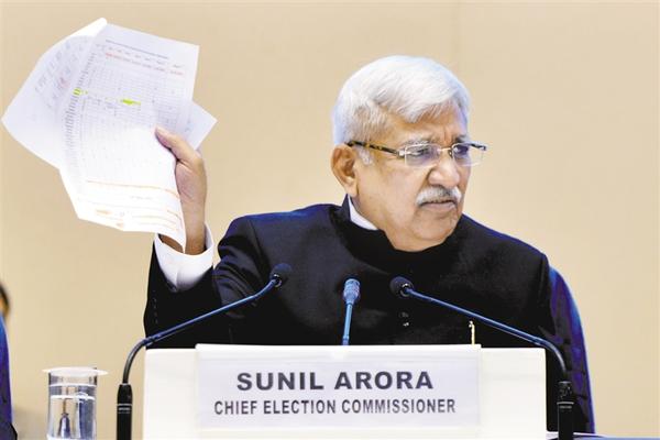 3月10日,在印度首都新德里,印度选举委员会官员苏尼尔·阿罗拉在新闻发布会上讲话。 印度选举委员会10日在新德里正式公布2019年印度大选日程。根据日程安排,2019年印度大选将从4月11日开始,分七个阶段进行,5月23日宣布选举结果。 新华社发(帕塔·萨卡尔 摄)