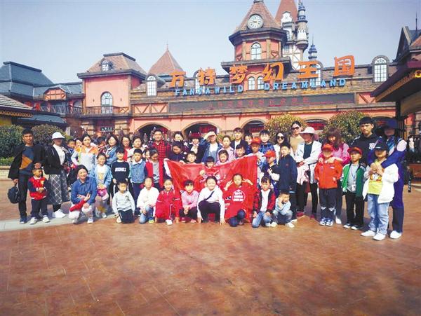 4月6日,周口报业小记者及其家长来到郑州方特梦幻王国,开启了一天的梦幻之旅。“太空飞梭”“飞跃河谷”“丛林飞龙”等项目不时传来小记者的阵阵尖叫;“龙王传说”“烈焰风云”“水漫金山”等传统故事呈现在小记者眼前;“魔法城堡”“秦陵历险”把小记者带入神秘的意境……一天里,小记者在家长的陪同下既增长了见识,又增进了亲子感情。 图为小记者及其家长在方特梦幻王国门前合影留念。 记者 任富强 摄