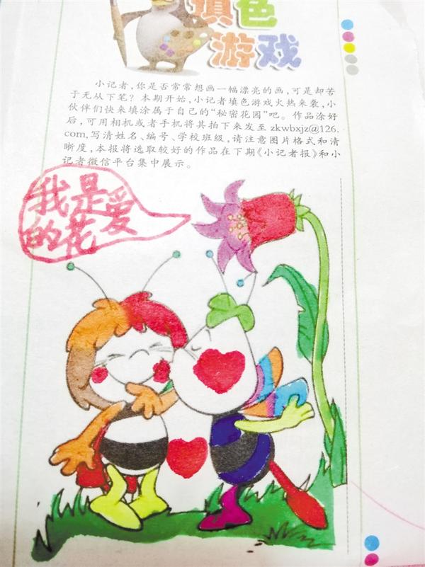 小记者,你是否常常想画一幅漂亮的画,可是却苦于无从下笔?小记者填色游戏火热来袭,小伙伴们快来填涂属于自己的“秘密花园”吧。作品涂好后,可用相机或者手机将其拍下来发至zkwbxjz@126.com,写清姓名、编号、学校班级,请注意图片格式和清晰度,本报将选取较好的作品在下期《小记者报》和小记者微信平台集中展示。