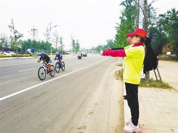 4月20日,“体彩·五环体育杯”2019环中原自行车公开赛(周口站)在市体育中心开赛。比赛过程中,来自我市社会各界的400多名青年志愿者为比赛保驾护航,获得好评。 记者 张洪涛 摄