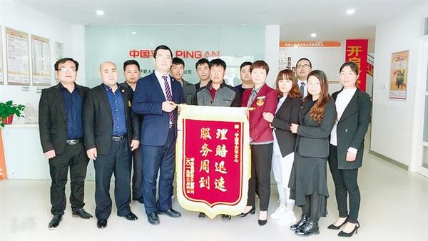 本报讯 日前,平安人寿客户舒先生的家人将一幅写着“理赔迅速、服务周到”的锦旗送到了平安人寿周口中支商水网点,并激动地紧握服务人员的双手,表示对平安的服务非常满意(如图)。