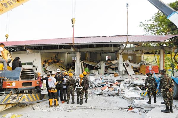 当地时间4月23日,在菲律宾邦板牙省,救援人员进行搜救工作。 菲律宾北部三描礼士省22日下午发生6.1级地震,截至目前已造成多人死伤,多个城市有建筑物受损。新华社发