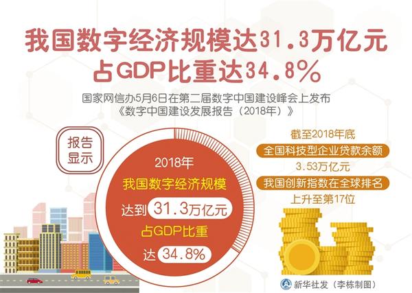我国数字经济规模达31.3万亿元 占GDP比重达34.8%