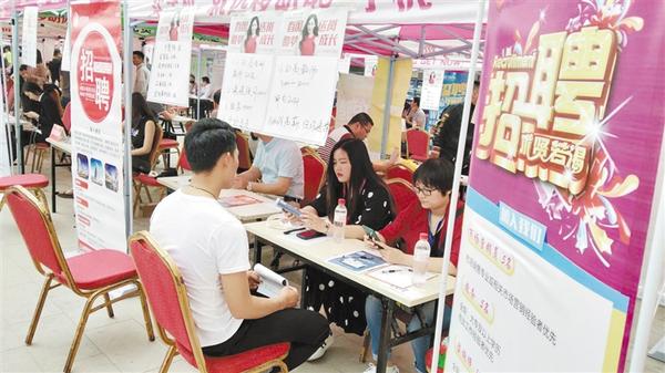 记者在现场看到,有的求职者和招聘企业工作人员深入交流(如图),有的求职者当场填写求职登记表。此次招聘企业大多来自我市中心城区,也有部分企业来自许昌市和浙江省,他们所涉及的行业多为幼儿教育、生物科技、财务咨询、汽车销售、文化传媒等,提供的待遇一般是月薪4000元左右,有一家管理咨询公司开出了月薪1.5万元的待遇。