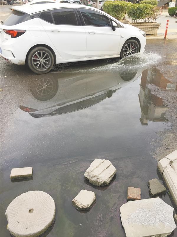 5月10日20时许,记者在阳光澜岸小区东门前看到,近40米长的污水带散发出难闻的气味,堵住了小区东大门,步行居民踩着污水中摆放的砖头小心翼翼地进出,一些骑车回家的居民行经此处则加速通过。“这些污水今年春节后就有了,下点小雨就会漫到我店里,而且更烦人的是污水倒流,下水道根本不起作用。”阳光澜岸小区东门前一家便民店老板告诉记者。“夏天来了,你闻闻,这气味多难闻。”一位居民无奈地说。