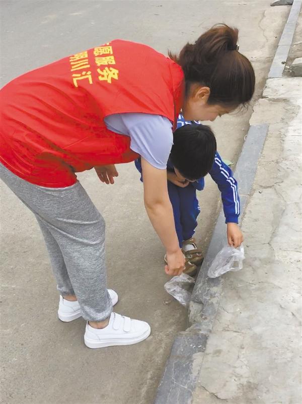 □记者 张鲁莎 文/图 本报讯 “创建国家卫生城市,人人有责,家家受益……”5月18日上午,这样的“创卫”宣传音频一直在川汇区荷花北路循环播放。记者循声找去,发现一位身穿红色马甲的志愿者手拉一名男童在进行“创卫”宣传,同时,他们还不时把地上的垃圾拾起来(如图)扔进垃圾桶。 记者采访得知,这是母子俩,母亲在共青团川汇区委工作,该路段是其分包片区,随身携带的小音箱是其单位统一配发的。 “我儿子今年6岁,正上幼儿园。趁着周末,让他跟我一起出门参与‘创卫’,以便从小培养他保护环境、爱护环境的意识。”该女子说。