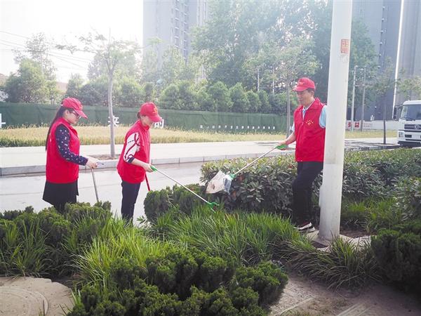 为进一步助力“创卫”工作,充分发挥党员先锋模范作用,营造浓厚的志愿服务氛围, 5月17日,团市委组织机关党员志愿者来到分包社区牛滩社区开展志愿服务活动。志愿者们身穿红马甲,手拿扫帚等工具,对道路两旁以及绿化带的垃圾进行了清理。记者 张洪涛 摄