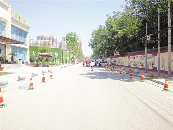 5月22日上午,记者走在芙蓉路北段,看到路面平整干净,新植树木绿意盎然,商铺规范经营……荷花路办事处工作人员介绍,连日来,他们组织人员规范芙蓉路沿街商户经营行为,发动企业对道路两侧进行硬化、绿化。此外,他们还精心设计制作了520平方米的文化墙,将老周口的民俗文化等展示在墙上,营造浓厚的文化氛围。