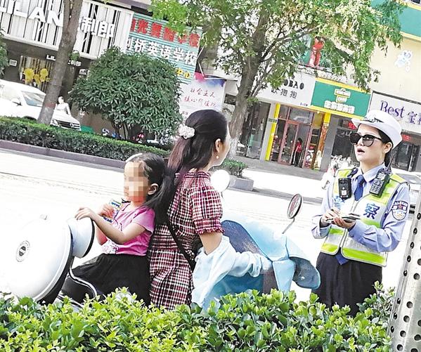 5月22日上午,一女子因骑电动自行车行走中心城区七一中路快车道被罚。