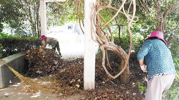 小区保洁员集中清垃圾