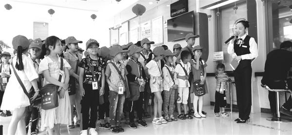 “小记者们,你们都陪着爸爸妈妈去过银行吗?知道银行有什么业务吗?你们的零花钱又是如何保管和使用呢?”刚进入银行不久,银行工作人员就向小记者们提出了不少身边常遇到的金融知识,而小记者们面对银行工作人员的提问,也纷纷给出了自己的答案。