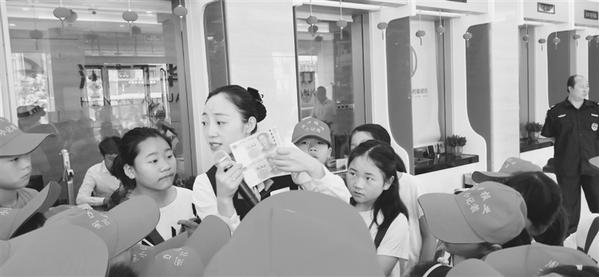 紧接着,银行工作人员从如何辨别人民币真伪、如何正确使用人民币、怎样存钱、如何理财等方面,给小记者们上了一堂生动的理财知识普及课。尤其在辨别人民币真伪上,告诉小记者们一定要从“看、摸、听”三个方面来判断。为了更直观辨别人民币的真伪,银行工作人员还拿出100元真人民币给小记者们做了演示。