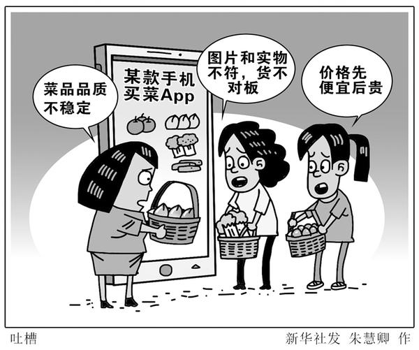手机买菜看上去方便快捷,但记者在采访中听到的吐槽也不少:菜品品质不稳定; 图片和实物不符,货不对板;价格先便宜后贵等。