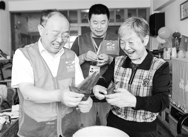 当日,在端午节来临前夕,浙江省慈溪市的全国劳模钱海军与“钱海军志愿服务中心”的志愿者们,来到84岁的浙江省劳动模范叶华家中一起包粽子、唠家常,与老人一起迎接端午节。端午节前,该中心志愿者还将分批走访慈溪市10个省、市级劳模,40个结对空巢孤寡老人,给他们送去节日的祝福。 新华社记者 徐昱 摄