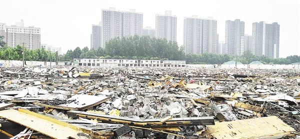 本报讯 6月6日上午,记者在市城乡一体化示范区嵩山路农贸市场看到,400多间房屋已拆除完毕。