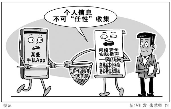 日前,针对当前移动互联网应用中存在的超范围收集、强制授权、过度索权等个人信息收集安全问题,全国信息安全标准化技术委员会在其官网发布了《网络安全实践指南——移动互联网应用基本业务功能必要信息规范》,为移动互联网应用收集个人信息提供实践指引。新华社发 朱慧卿 作