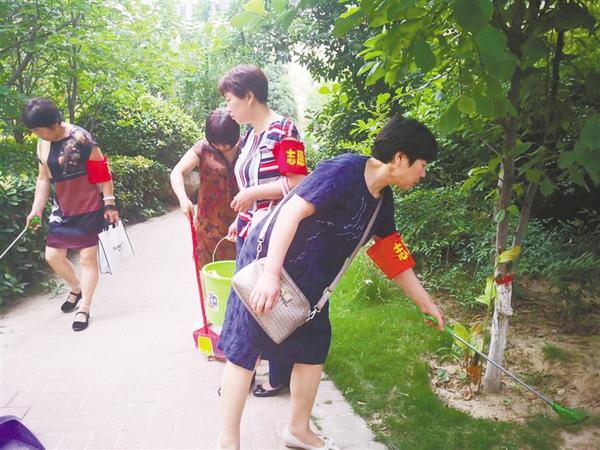 志愿者清理草坪上的垃圾。记者 黄佳 摄