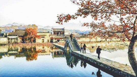 小贴士:宏村对65岁以上老人免票,宏村内讲解员服务也是免费的。宏村最佳旅游时间为每年3月下旬至4月初,此时,油菜花盛开,粉墙黛瓦,青山绿水,黄花遍野,是一幅天然图画。另外,每年11月上旬秋色正浓,宏村的枫叶一点也不比北京香山逊色。宏村离黄山风景区35公里,离西递20公里,有旅游专线车往返。