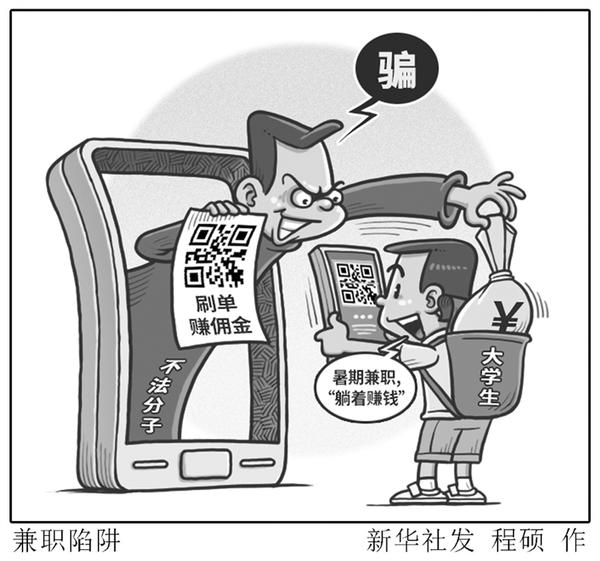 随着暑期来临,一些大学生或是为了贴补家用,或是为了锻炼能力,选择在假期寻找一份兼职。由于大学生大多涉世不深,暑期也成为不法分子行骗的重要节点。新华社发 程硕 作