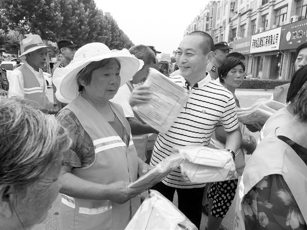 “因为环卫工人任劳任怨、勤勤恳恳地工作,才有了干净、整洁的城市。今天,我们向全县850名环卫工捐赠价值13万元的T恤衫850件,目的就是向环卫工人献爱心。”周口凯盛实业有限公司董事长方凯告诉记者,助贫济困、奉献爱心是中华民族的传统美德,也是企业人士所应该承担的社会责任。即日起,周口凯盛实业有限公司成立“大富城”义务劳动队,每周六上午,公司全体员工集中清扫部分路段的垃圾,减轻环卫工人的负担,为“创卫”贡献力量。