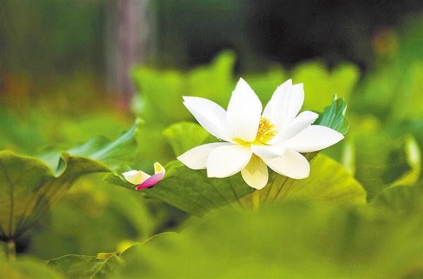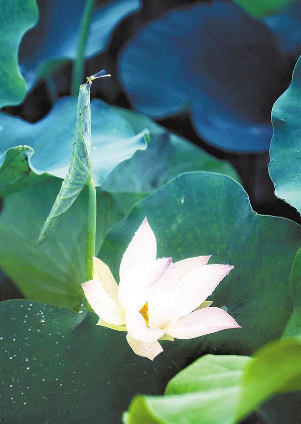 在水波微澜的湖面上,湖天一色,烟水空蒙。湖面飞鸟掠过,和着歌,冲击长空。荷叶撑破碧水,亭亭玉立,像出水的芙蓉美人,有的含苞待放,有的已经怒放,有的还是花骨朵……荷花随风舞动,送来淡淡清香,沁人心脾。