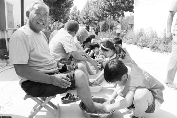 为培养孩子们敬老爱老的传统美德,学会感恩社会,7月6日,太康县志愿者协会组织小学生来到芝麻洼敬老院打扫卫生、为老人洗脚、陪老人聊天,还表演了精彩的文艺节目,赢得一致称赞。