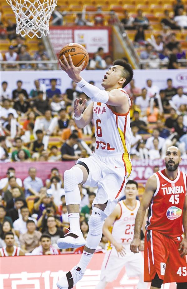 当日,在广东深圳举行的2019斯坦科维奇杯洲际篮球赛友谊赛中,中国队迎战突尼斯队。新华社发