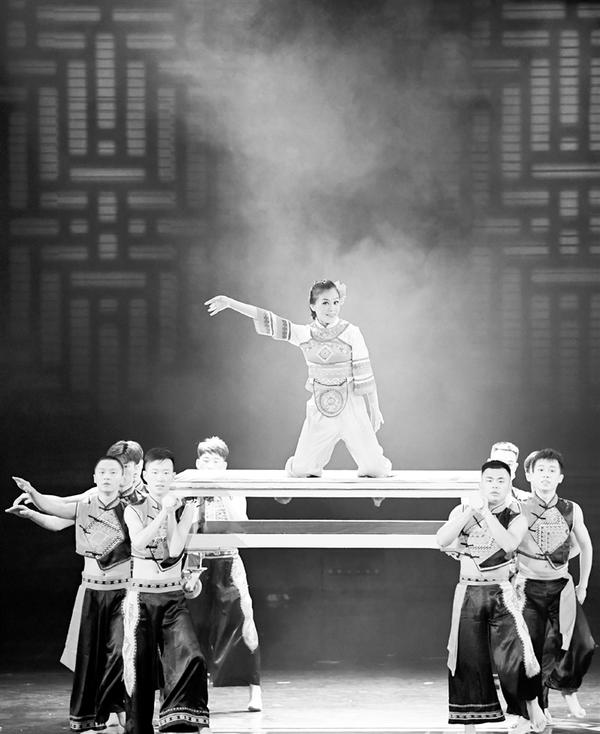右图为当日演员在《天上黄水》歌舞剧中表演。