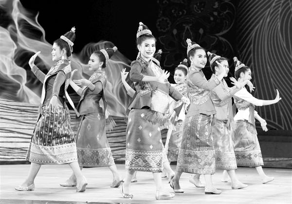 图1: 7月24日,来自老挝的演员在表演舞蹈《开心的老挝人民》;