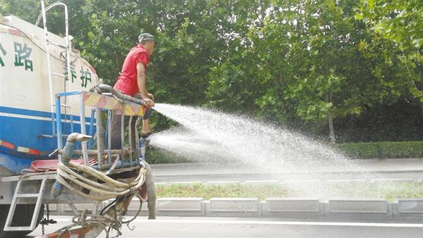 近日,我市气温一直居高不下,进入“烧烤模式”。7月28日,我市气温高达38℃左右,记者走访中心城区多个路段看到,为了让市容市貌更加美丽,一线的劳动者顶着高温,坚守在各自的岗位,默默地为我们的城市建设贡献着自己的一份力量。