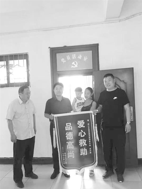 我们把时针拨回到6月9日。当天上午,吴宗森开车去项城送女儿上学。行至健康路与环城路交叉口附近,他看到一名3岁多的男孩神色慌张地在马路中央徘徊。为防止意外,吴宗森赶忙下车,把小男孩抱到安全的地方。看到男孩满头大汗,小脸通红,吴宗森抱着他到附近一家超市休息。得知男孩找不到家后,他一边安慰男孩一边打电话报警。最终,吴宗森和民警把男孩安全送到家中。原来,男孩是在妈妈不注意时偷偷溜出来的。6月10日上午,男孩的母亲邝女士来到吴宗森的单位,送来锦旗表达谢意(如图)。