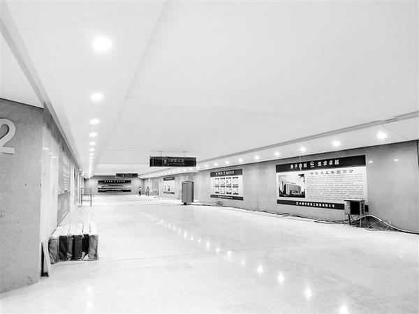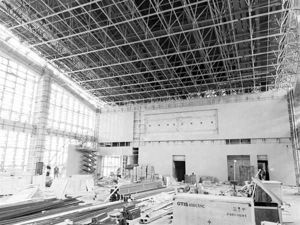 在施工现场,记者看到站房顶部脚手架已拆除,外立面还架着脚手架和罩着防护网。站房内部工人正在装修,墙面、照明、吊顶等工作同时展开。