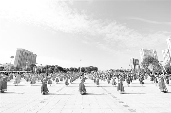 图为呼伦贝尔市老年体协的群众在启动仪式上表演。 新华社发