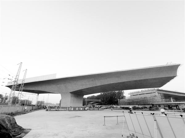 本报讯 8月8日早,历时近两个小时,周商连接通道建设八一大道打通工程上跨漯阜铁路现浇箱梁顺利完成转体施工,标志着八一大道打通控制性节点工程取得重大进展,为国庆节建成通车创造了条件。