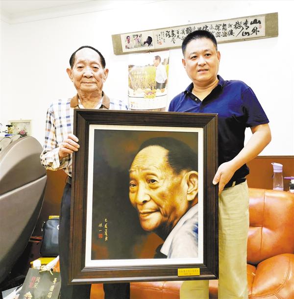 本报讯 8月5日下午,在中国工程院院士、“杂交水稻之父”袁隆平湖南长沙的家里,周口籍油画家张一将自己创作的袁隆平油画肖像送到袁隆平手中,提前祝这位德高望重的老科学家90岁生日快乐。袁隆平看后,连夸画得好,画得传神逼真,并幽默地说:“这才是我应有的精气神。”
