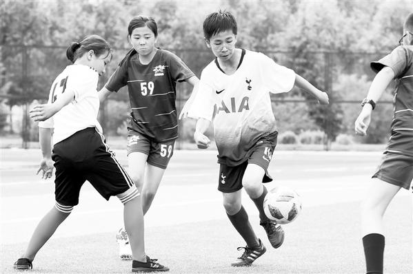 暑假期间,甘肃省临夏市的不少小学生通过参加足球俱乐部或夏令营活动,享受足球运动的快乐。新华社记者 马宁 摄