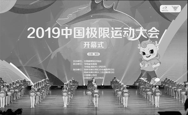 图为当日拍摄的2019年中国极限运动大会开幕式现场。