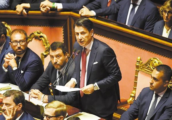 当地时间8月20日,在意大利罗马,意大利总理孔特在参议院发表讲话。