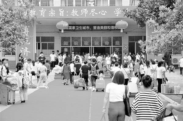 又到一年开学季。8月25日上午,周口颍河高级中学2019级新生正式报到,一大早,该校广场上就挤满了拖着大包小包的学生和家长。据了解,今年有近千名新生进入该校学习。该校实施“文昌教育理念”,采取“衡水教学模式”,为一批中招成绩不理想的学生找到了一条通往理想大学的道路,这种办学模式深受学生家长好评。记者 刘华志 摄