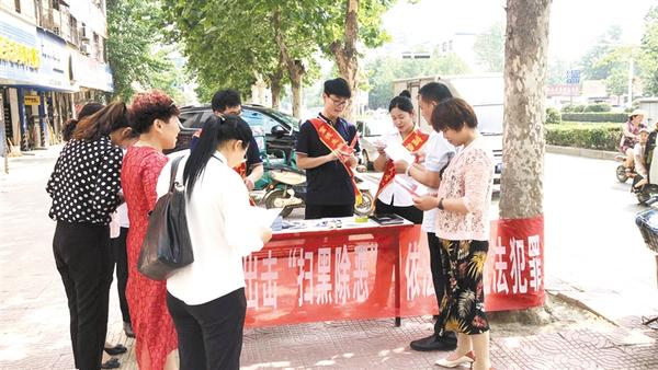 近日,富德生命人寿周口中支认真贯彻《中国银保监会关于银行业和保险业做好扫黑除恶专项斗争有关工作的通知》精神,持续开展扫黑除恶专项宣传工作。该公司采取悬挂横幅、张贴海报等形式,营造宣传氛围,组织员工开展专题学习活动,重点宣传打击保险诈骗活动,设立专项举报热线,铲除黑恶势力在保险领域滋生的土壤,净化保险金融领域。图为员工在人流密集的市区向过往群众发放宣传资料。通讯员 孙东丽 摄