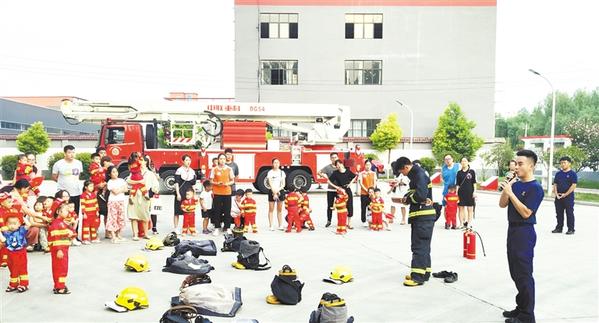 9月1日,鹿邑县消防救援大队迎来一家幼儿园的100余名萌娃,消防员借助开学第一课,让这些萌娃在欢声笑语中感知消防、学习消防、体验消防,初步增强安全意识。